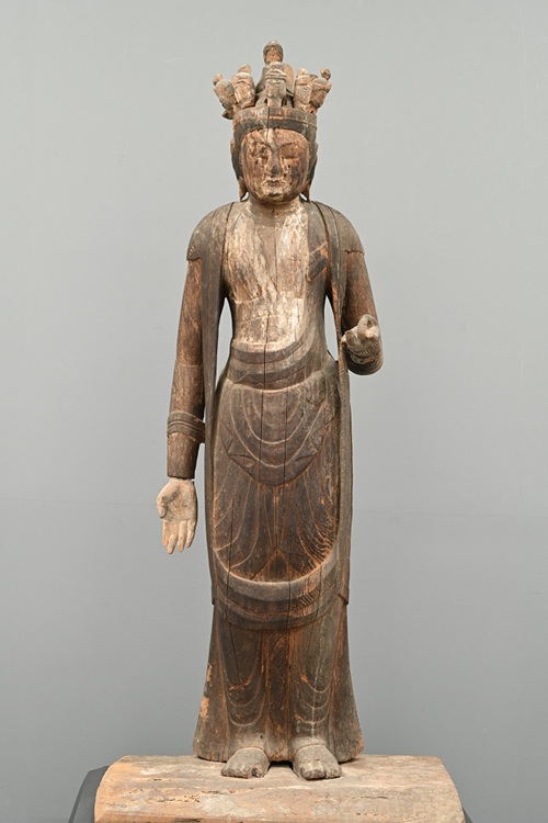 立っているお像で、一本の木からほぼ全身を作っている一木造りの、高さが103.9㎝の仏像です。