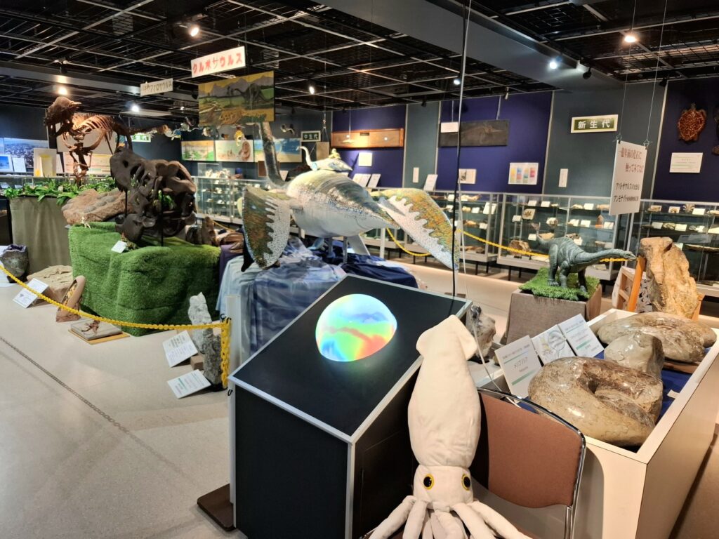 2階に上がると、恐竜の標本や化石などを集めた「ジオワールド」のエリアが広がっています。