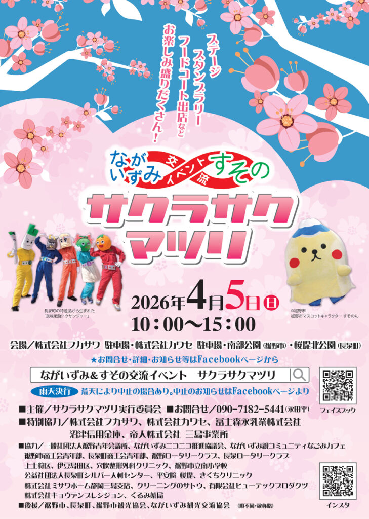 2026年4月5日(日)、「ながいずみ&すその交流イベント サクラサクマツリ」が開催されます。