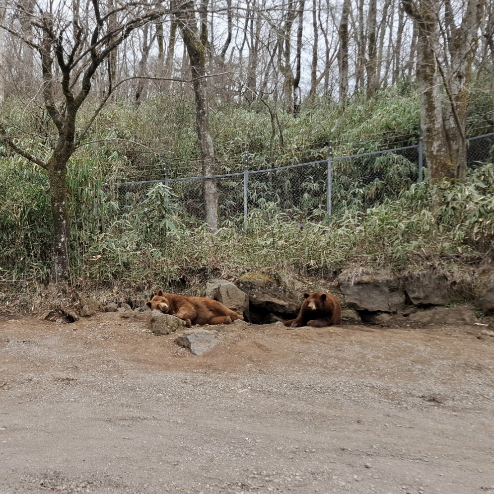 頑丈な重いゲートが開きサファリゾーンに入ると、まず現れたのは熊!!🐻