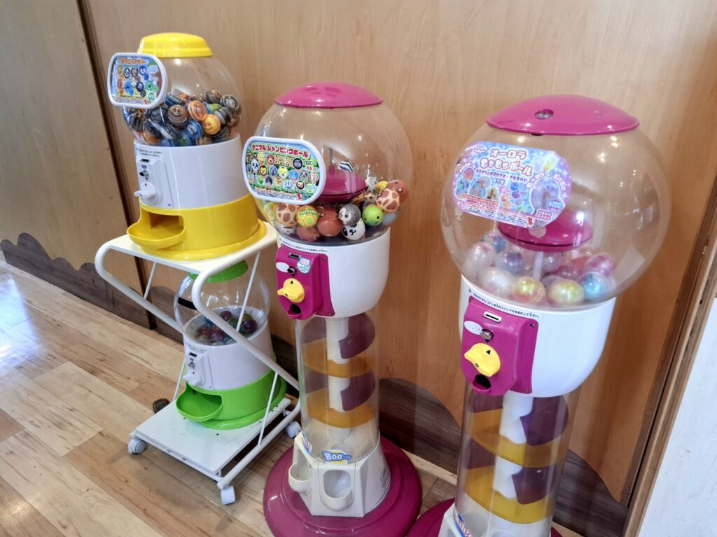 フルフラットスペースの近くにはガチャガチャおもちゃもあり、こちらは子どもたちが嬉しいスポットですね😊