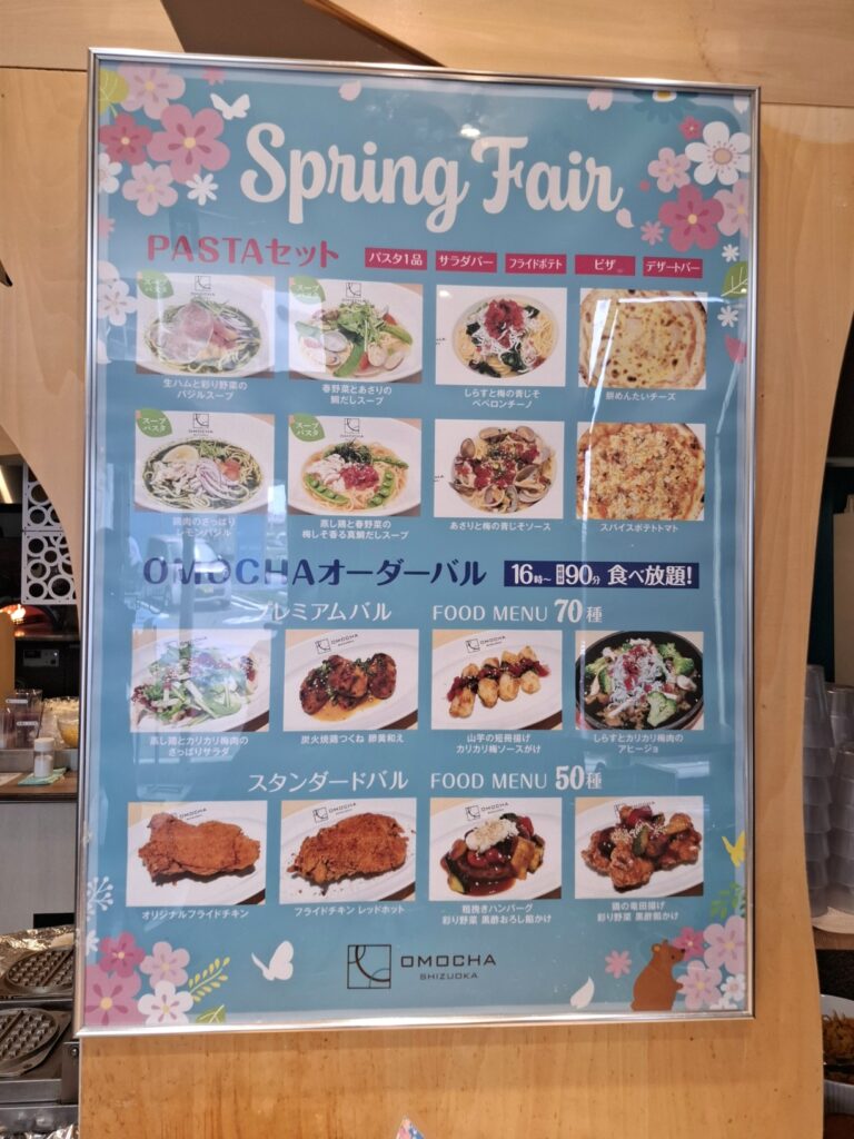 OMOCHA SHIZUOKA 長泉店ではランチタイムはパスタセット、ディナータイムはバルメニューをそれぞれ食べ放題で楽しむことができます。
